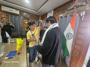 On the eve of New Year Celebrations 2026 Visited our very able Officer Shri Toko Babu ld DC Itanagar Capital Region along with Our Newly Elected Gen Secretary Shri Kipa Saktar & My Executive team & felciatted him our XXV- AAPPTF SILVER JUBILEE & NEW YEAR Presentation along with Our Union [CALENDER./SOUVINER]