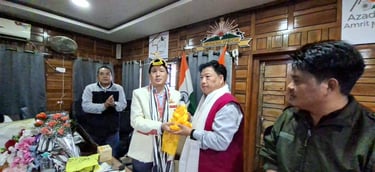 The Central Executive Members of the All Arunachal Pradesh Public Transport Federation (AAPPTF), led by me in my capacity as State President, along with Shri Kipa Saktar, Secretary General had the honour of felicitating Shri Lobsang Tsering, the newly appointed Deputy Commissioner of Papum Pare District, at his office.