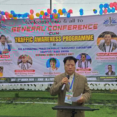 The General Conference and Traffic Awareness Program organised by the All Arunachal Pradesh Public Transport Federation (AAPPTF] at Koloriang Headquarters was completed in the presence and Cooperation of the District Administration, Police Department, AAPPTF District Units, and Owner Drivers.